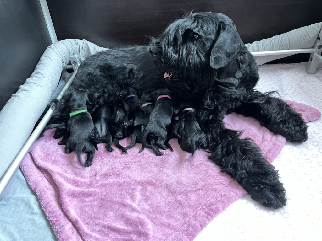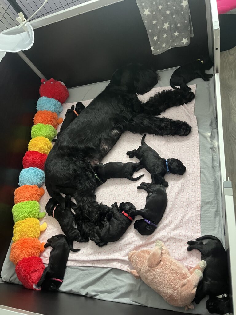 Unsere Welpen werden in ihrem eigenen großzügigen und liebevoll eingerichtetem Welpenzimmer in einer Rasse geeigneten Wurfkiste geboren.